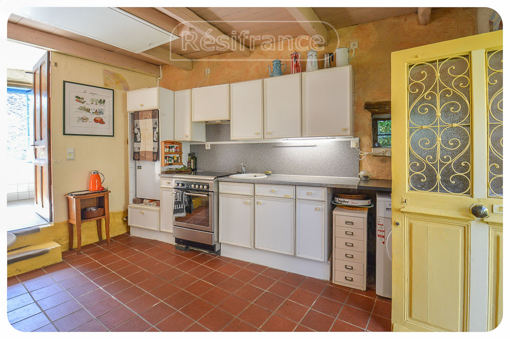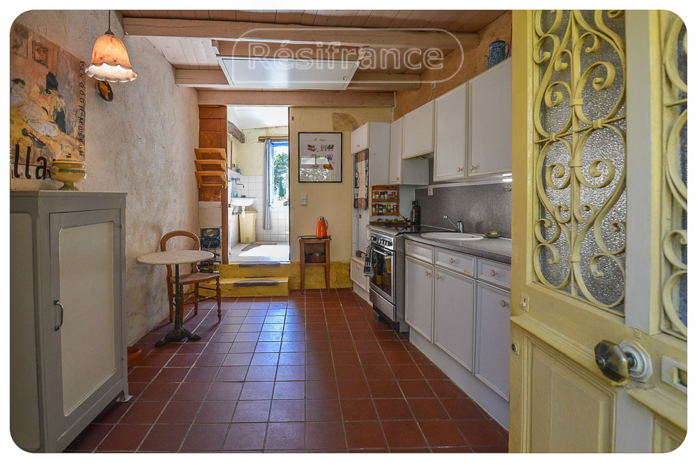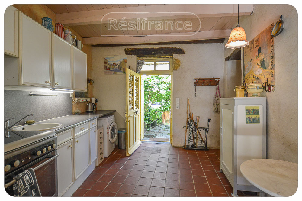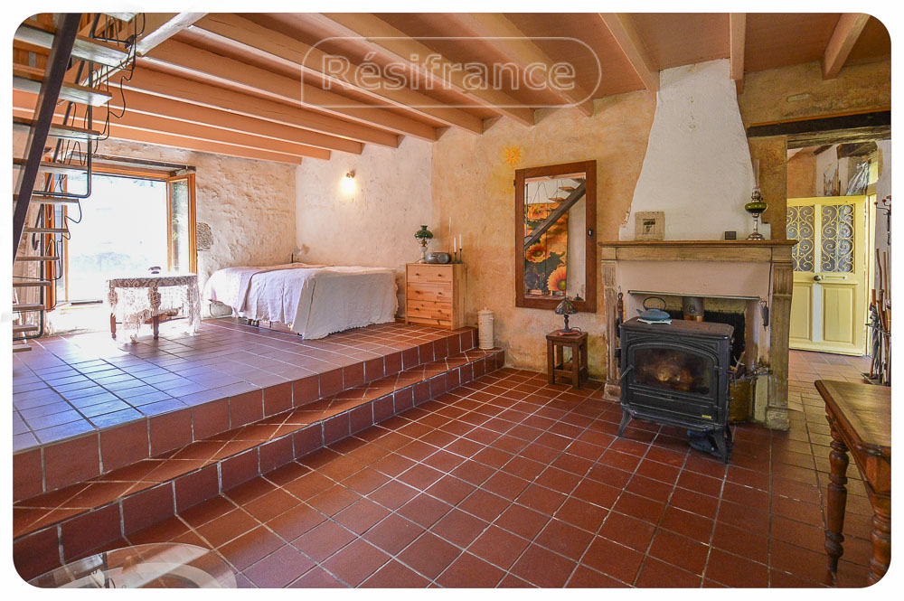 Authentieke elementen in het huis: Mooie schouw in de woonkamer. Verschillende ruimtes met balkenplafonds. Oude gootsteen met waterpomp. Het huis heeft natuurstenen muren.
