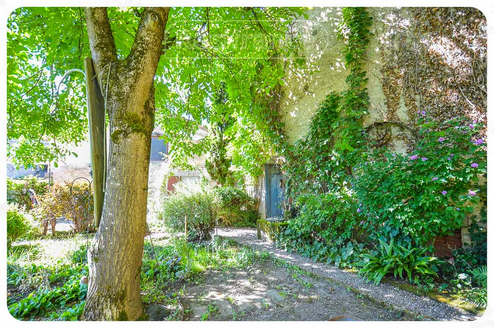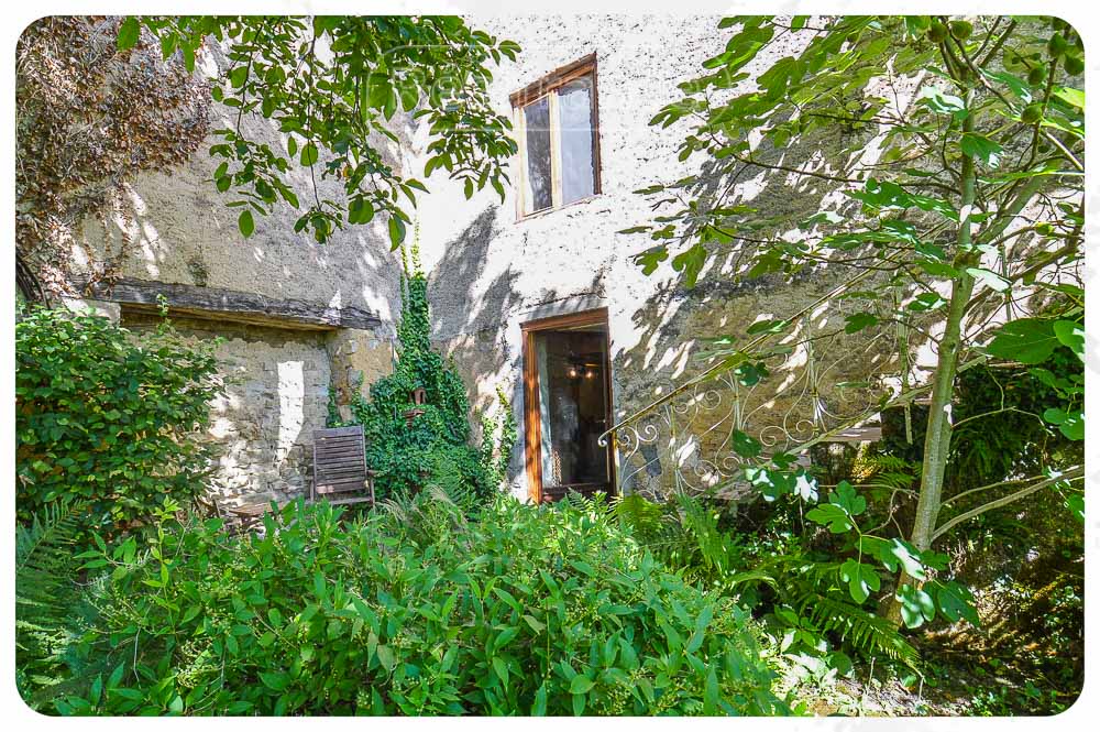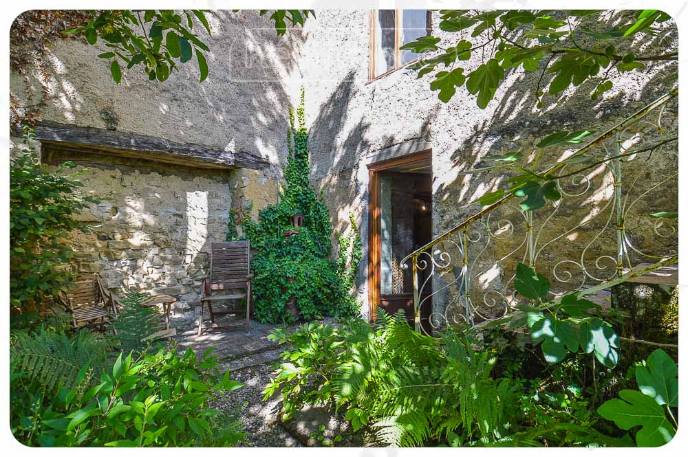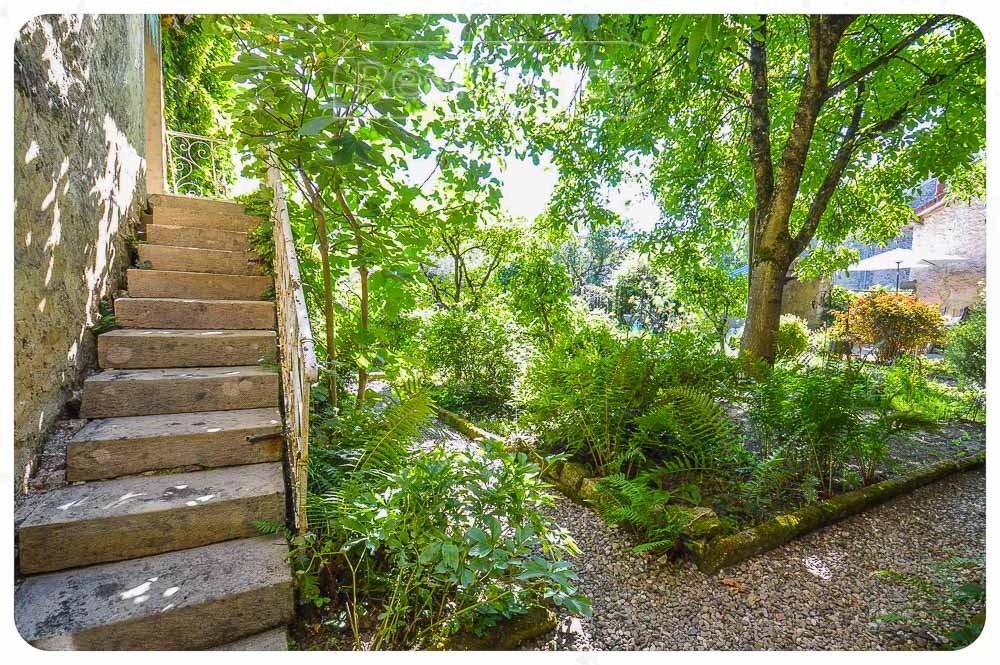 Authentieke elementen in de tuin: Zeer mooie stenen trap die toegang geeft tot de slaapkamer in het schuurgedeelte.