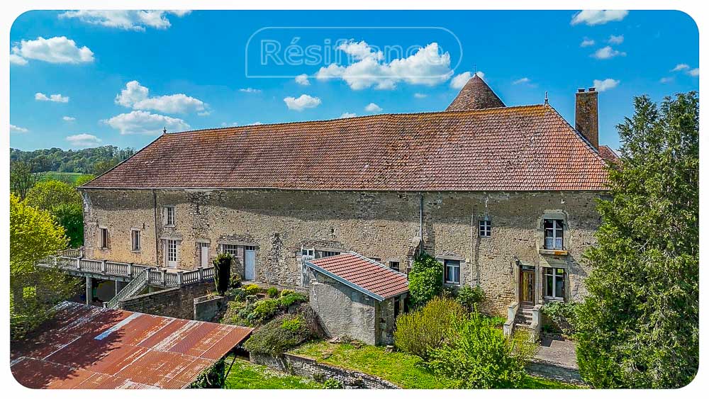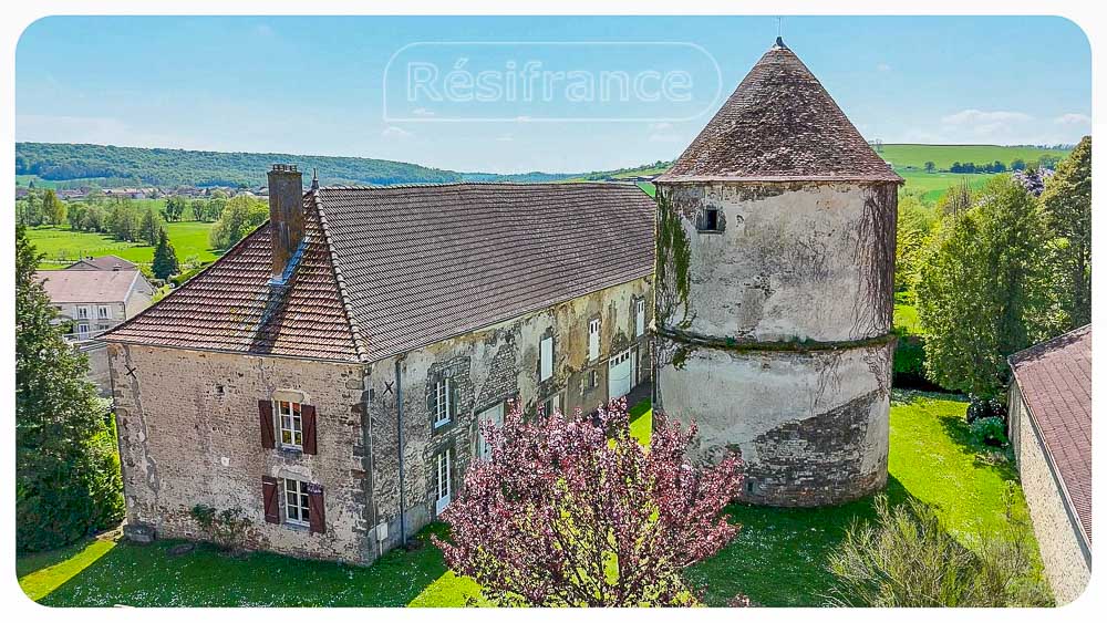 Het gebouw is een vrijstaande karakterwoning bestaande uit 2 wooneenheden, met een fraai aangelegde tuin eromheen, met een prachtige toren (voormalige duiventil), terrassen op verschillende niveaus en een schitterend uitzicht op de heuvels en bossen. Het terrein wordt aan één kant begrensd door het riviertje La petite Amance. Het totale perceeloppervlakt is 9901 m².