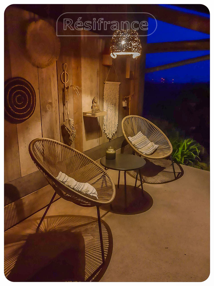 Het huis is half vrijstaand met een mooi aangelegde tuin voor, naast en achter het huis, met terrassen op verschillende niveaux en fantastisch uitzicht over de vallei. Het totale oppervlak van het terrein bedraagt 2372 m². Het terrein is ook van beneden te bereiken via een klein landweggetje.