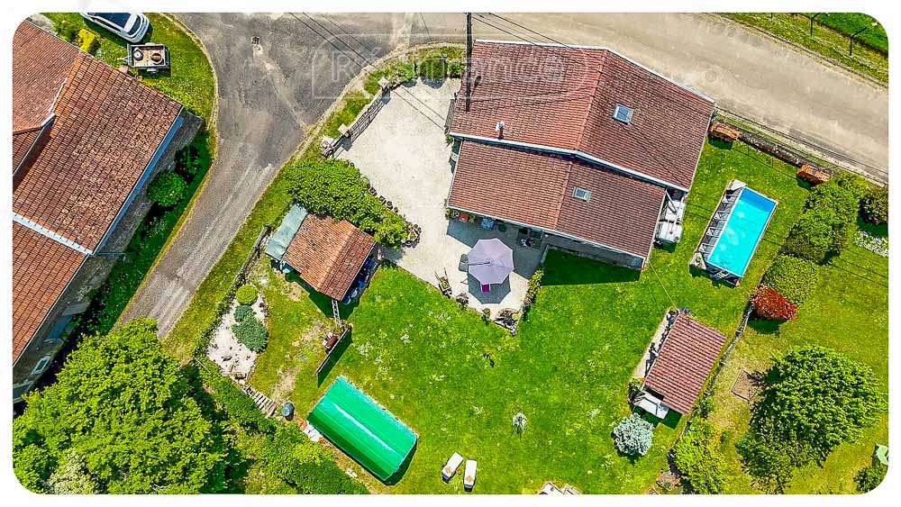 Het huis is vrijstaand met een grote tuin voor, naast en achter het huis, terras, overdekt terras, mooie beplanting en mooi uitzicht over het dorp en de weilanden. Het totale oppervlak van het terrein bedraagt 1429 m²